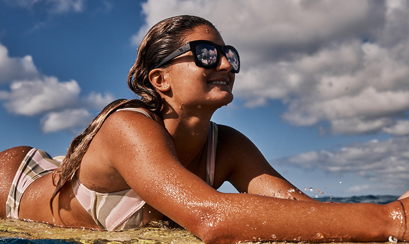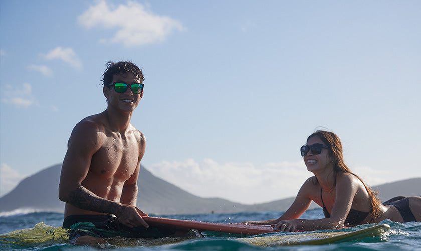 Constructed with a specially formulated injection molded resin with a density lower than water, allowing the sunglasses to float.