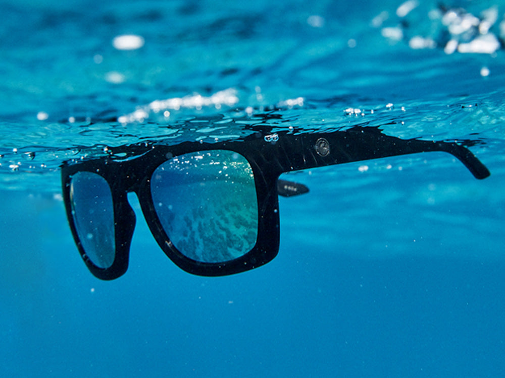 These sunglasses are constructed from a specially formulated injection molded resin with a density lower than water, allowing them to float.